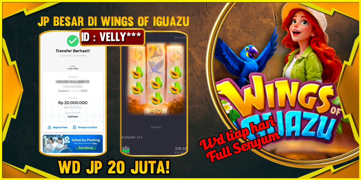 Selamat kepada user id : VELLY*** telah berhasil mendapatkan kemenangan besar pada permainan WINGS OF IGUAZU sejumlah Rp 20,000,000,-