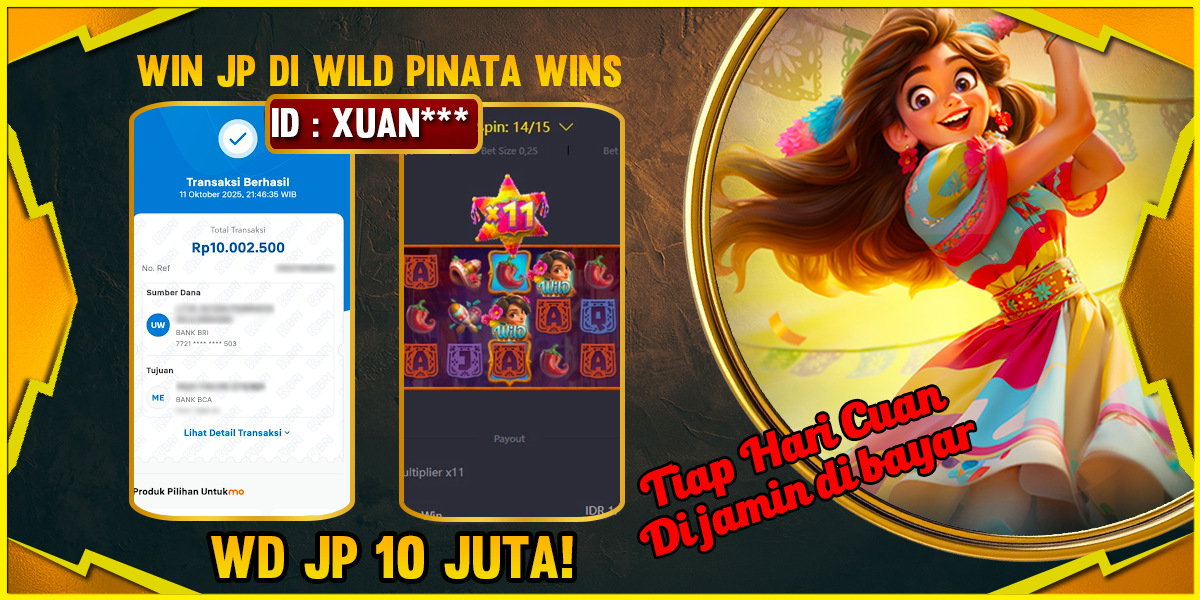 Selamat kepada user id : XUAN*** telah berhasil mendapatkan kemenangan besar pada permainan PINATA WINS sejumlah Rp 10,000,000,-