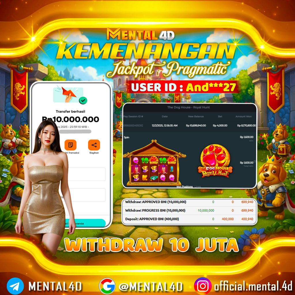 Selamat kepada user id : AND**27 telah berhasil mendapatkan kemenangan besar pada permainan SLOT THE DOG HOUSE – ROYAL HUNT sejumlah Rp 10,000,000,-
