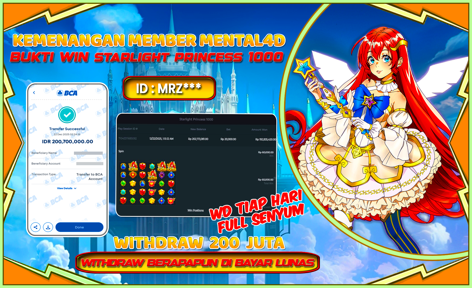 Setelah mengisi formulir withdraw dengan kurung waktu 3-5 menit pihak MENTAL4D langsung melakukan transfer kepada pemilik user id dan dana sudah dapat di cairkan oleh pemenang. Bukti pembayaran yang kami berikan merupakan bukti pembayaran SAH / VALID yang langsung di dapatkan melalui tanda transfer transaksi dari bank yang dituju.